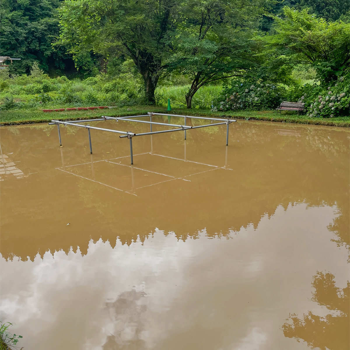 もともと夏期休業前で魚が少なかったことに加え、ここ数日の大雨で池が濁ってしまい、この状態は数日間続く見込みです。